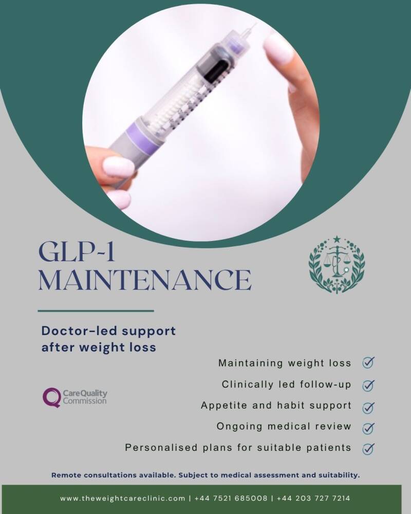 Our focus is on clinically led follow-up, appetite and habit support, and helping patients navigate the maintenance phase with appropriate oversight.